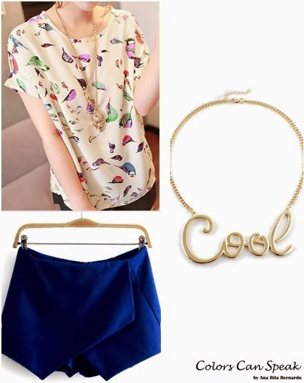 E porque as saudades do Verão já apertam, selecionei umas pecinhas que quero muito muito trazer para o meu armário na próxima estação. Esta saia-calção anda debaixo de olho há que tempos e cheira-me que vai ser desta. A blusa parece fresquinha, tem mesmo ar de Verão que é o que se quer. O colar compõe o conjunto.